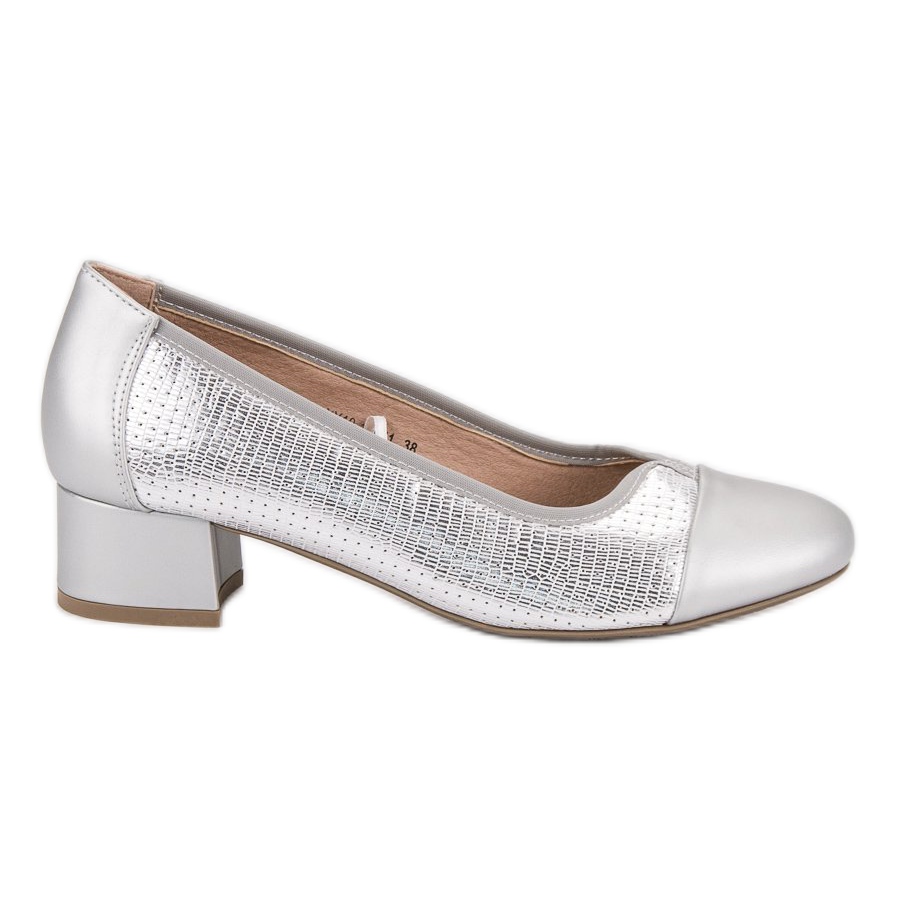 Los salones planos VINCEZA en color gris son una combinación perfecta de elegancia y comodidad que toda mujer debería tener en su colección. Fabricados en piel natural de alta calidad, estos zapatos se distinguen por un sutil tono plateado que les aporta un brillo único.
