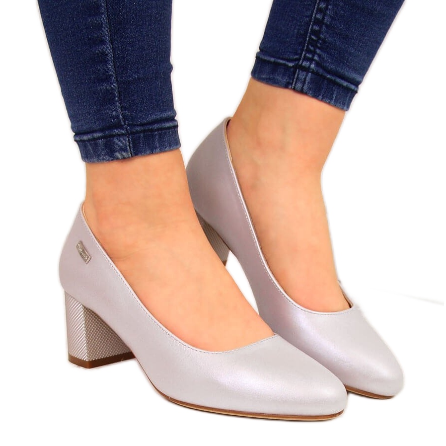 La altura de la punta de almendras y el talón de 6 cm hacen de estas bombas una combinación ideal de elegancia y comodidad. Un color beige con un tono de perla complementará perfectamente cualquier estilización, agregando su brillo y estilo. Los fracasos adicionales son un detalle práctico que le permitirá disfrutar de estos zapatos únicos aún más.