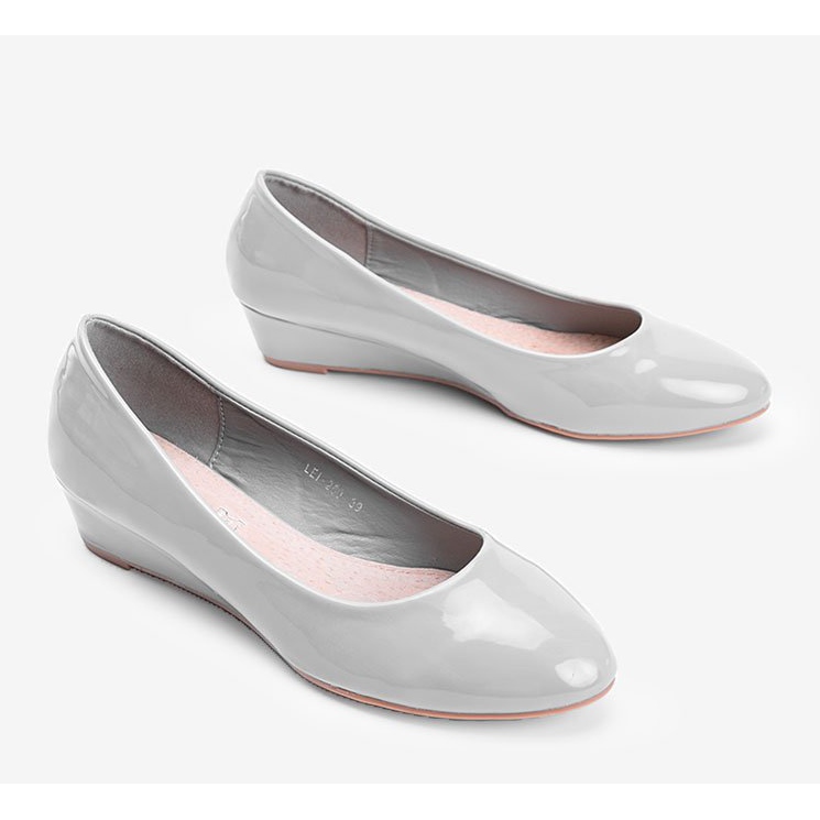 Detalles: Bombas grises en el tacón de cuña baja Chantal