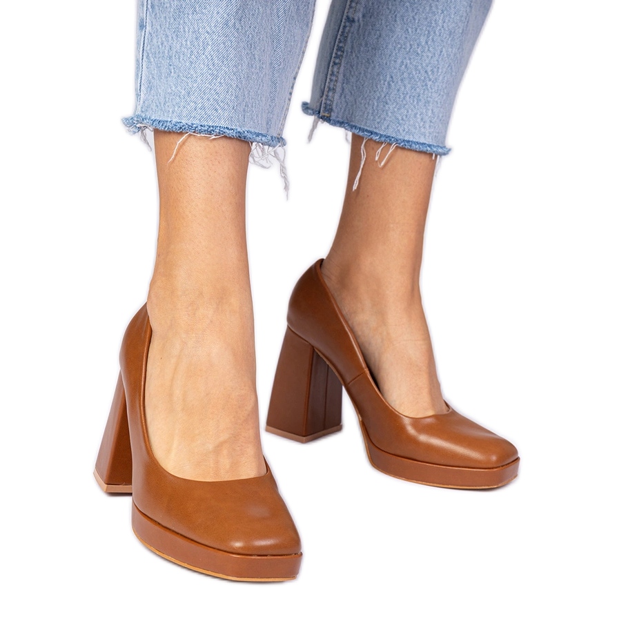 Una nariz cuadrada que caracteriza a este modelo es un éxito de las últimas tendencias, agregando originalidad. Un hermoso tono marrón, referido por el fabricante como camello, se ajusta perfectamente a varias estilizaciones, desde salidas todos los días hasta la noche. Puedes combinar estas bombas con vestidos, faldas o pantalones, lo que los convierte en un elemento extremadamente universal de ropa.