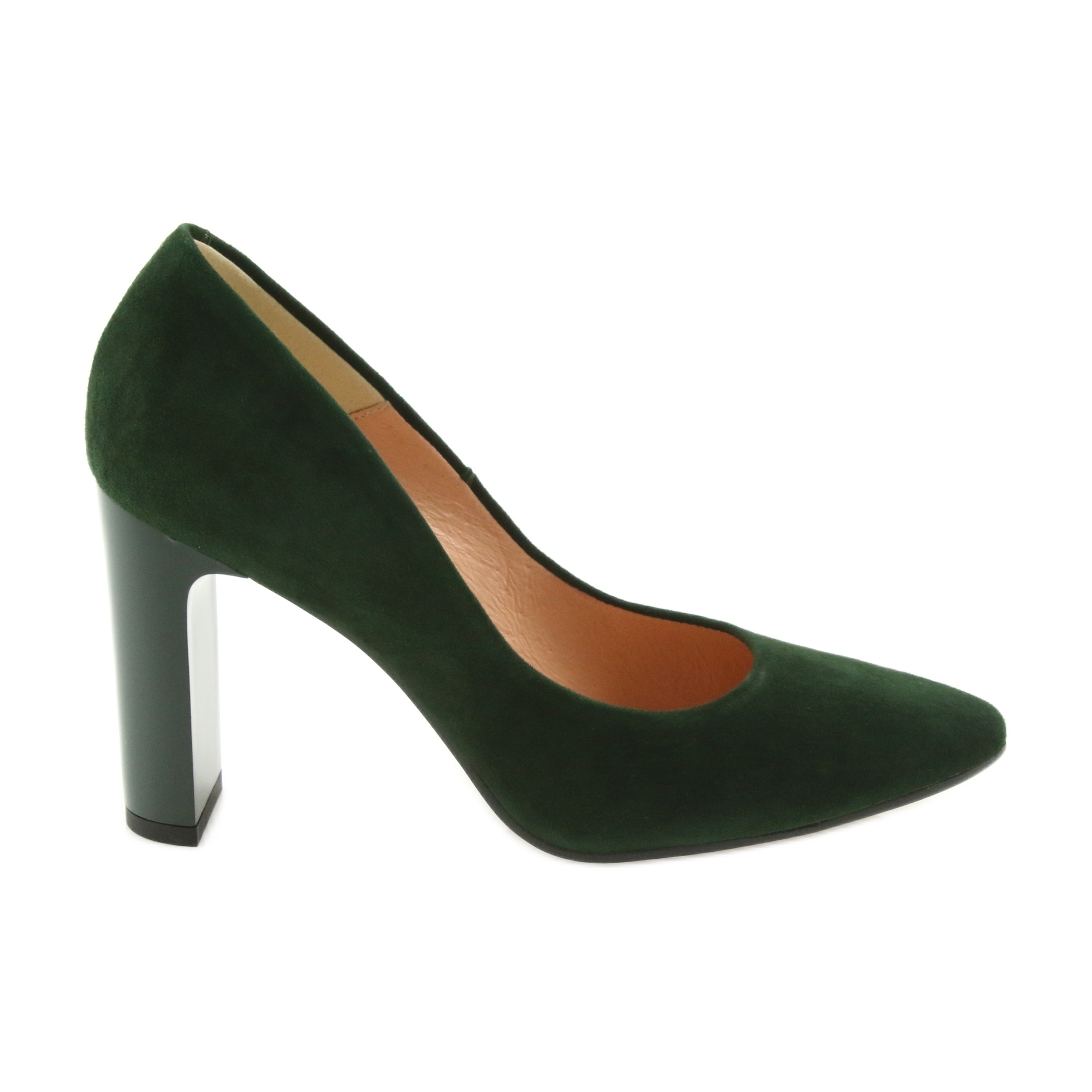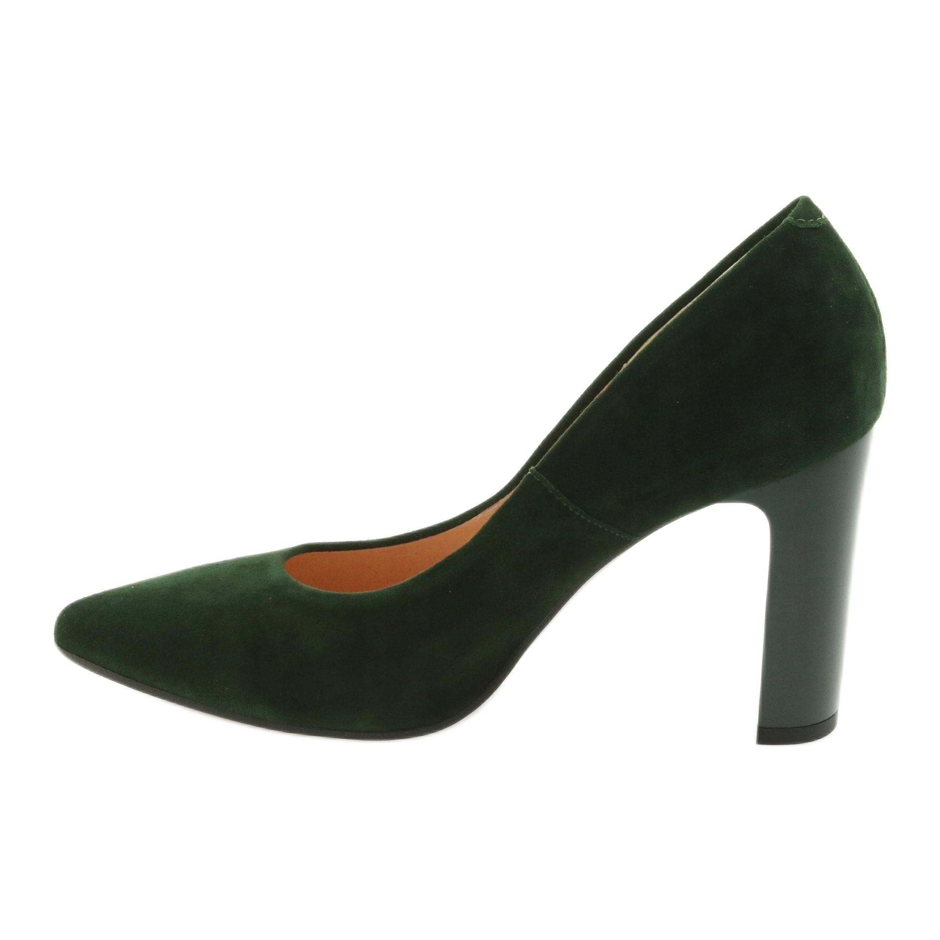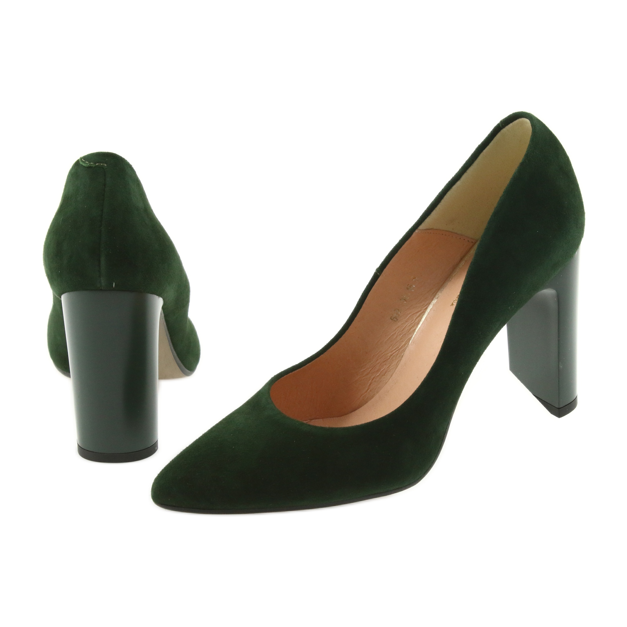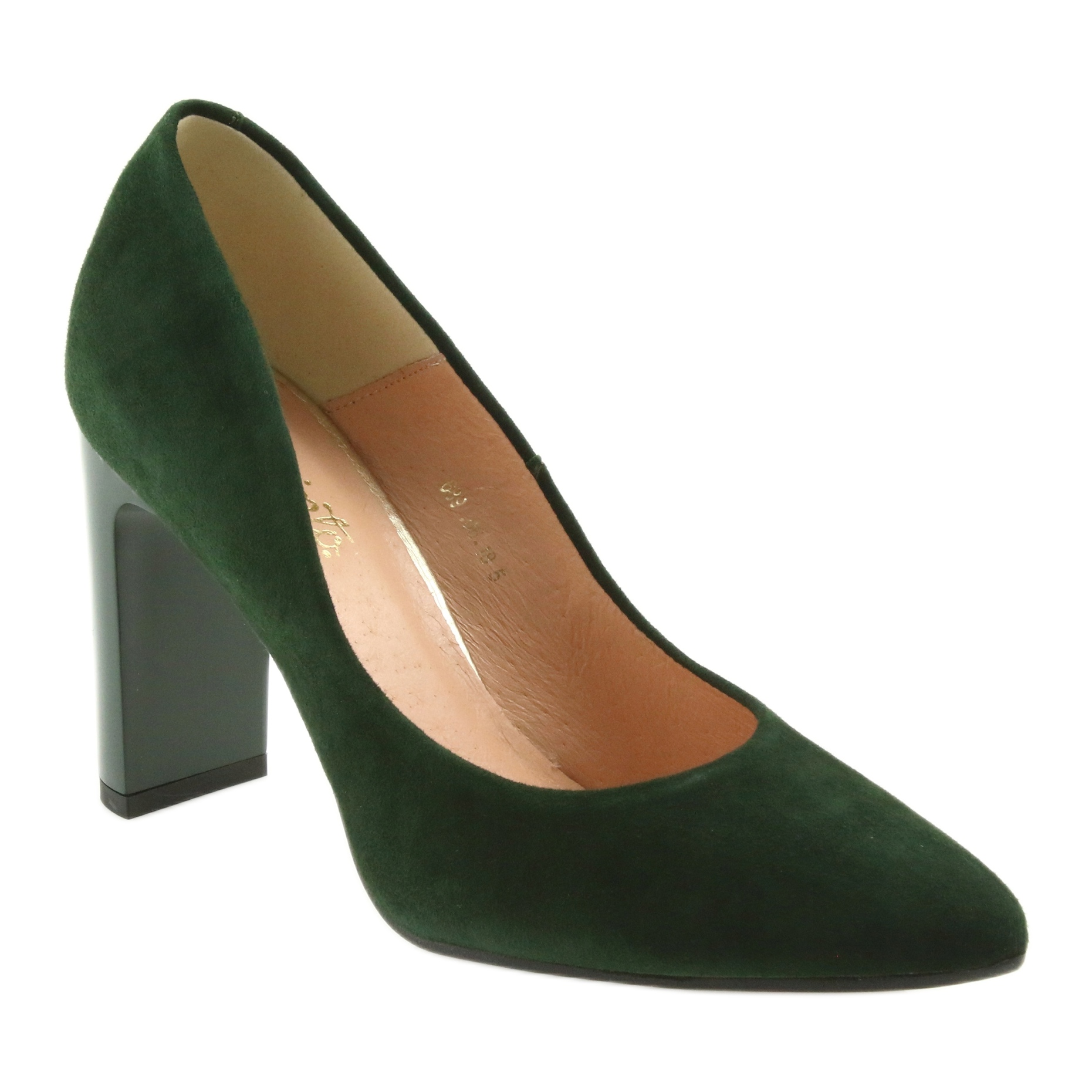 Presentamos los zapatos de salón de tacón Espinto 689 verdes, la elección perfecta para las mujeres que quieren combinar elegancia con comodidad. Estos zapatos únicos, hechos íntegramente de gamuza natural de alta calidad, deleitan con su tono único de verde oscuro. Gracias a la cómoda plantilla fabricada en piel flor natural, calzarlas es puro placer.