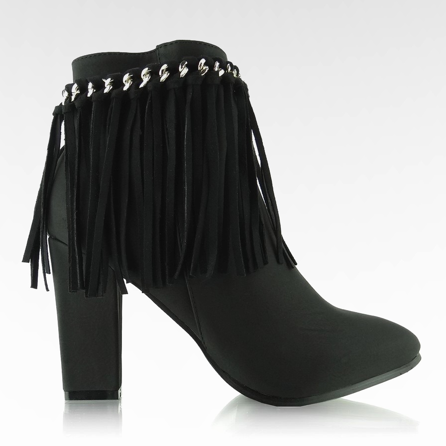 Hermosas botas con borlas, abrochadas con broches, para que pueda usarlas de 2 maneras, en la versión clásica, suave o con el acento más de moda de la temporada. El borde con flecos está decorado con una delicada cadena de oro. Los zapatos tienen un tacón ancho y estable que no tensa el pie. Están totalmente forrados con pieles delicadas. Se ven hermosos en la pierna y llaman la atención.
