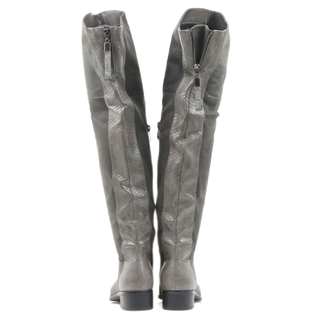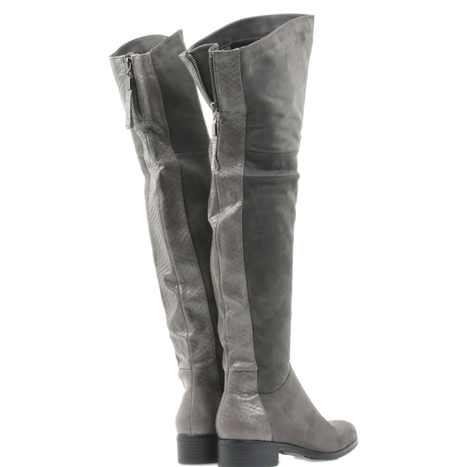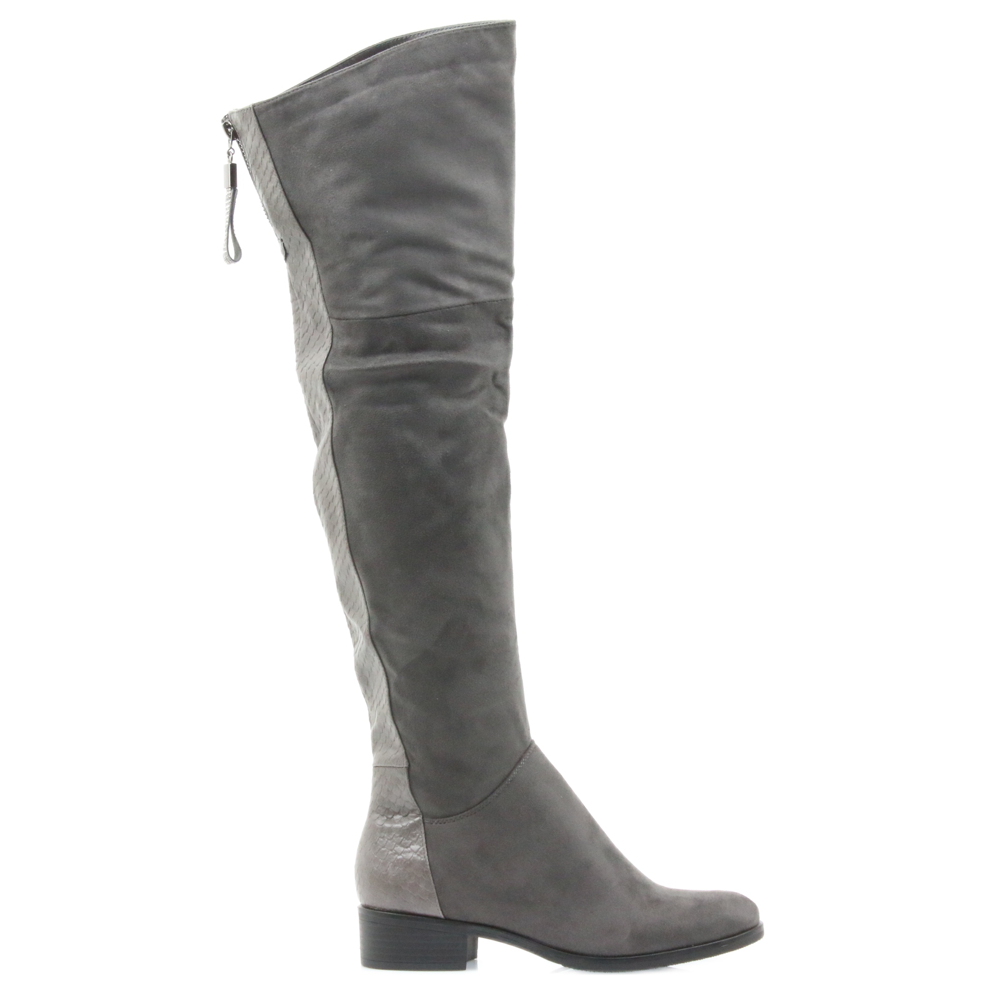 Las botas por encima de la rodilla Filippo 379 en color gris son la elección perfecta para las mujeres que valoran el estilo y la comodidad. Hechas de cuero ecológico de gamuza de alta calidad, estas botas lucen elegantes y funcionales al mismo tiempo. La parte trasera de la pala está decorada con una inserción sintética única que imita una escama de serpiente, añadiendo carácter al calzado.