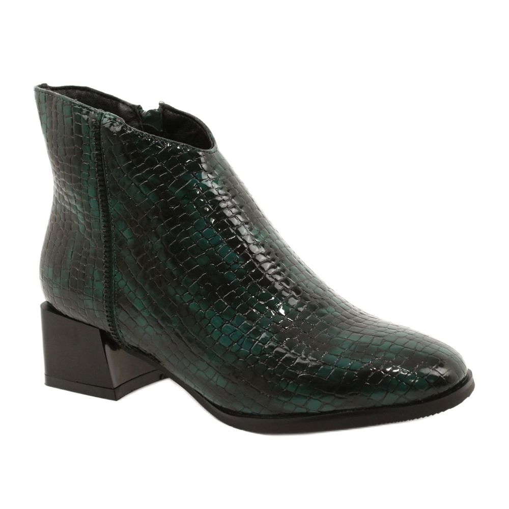M. Daszyński MR2130-8 botas para mujeres aisladas "verdes" que combinan comodidad con un acento de moda. Hecho de cuero ecológico con un acabado ligeramente barnizado, con un motivo animal transparente en un tono de verde y negro, son una adición original a las estilizaciones casuales. Una delicada decoración en forma de una cerradura visible le da a los zapatos un carácter moderno.