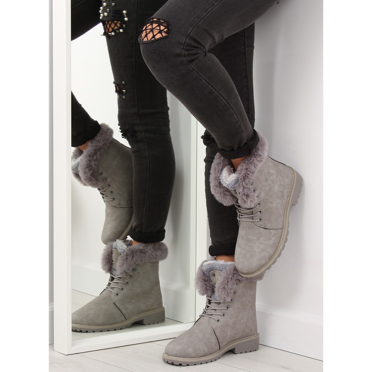 Madera de mujer aislada. Para sobrevivir a los días fríos, necesita abastecerse de estas cálidas botas, ¡y garantizamos que el invierno no le hará daño! La moda clásica de los amantes de los barcos está adornada con un pelaje que sobresale del interior y una impresionante lengua tachonada tachonada. El interior está acolchado con una piel gruesa que le dará calor y comodidad, una suela sólida con un protector. Material exterior - ecopiel.