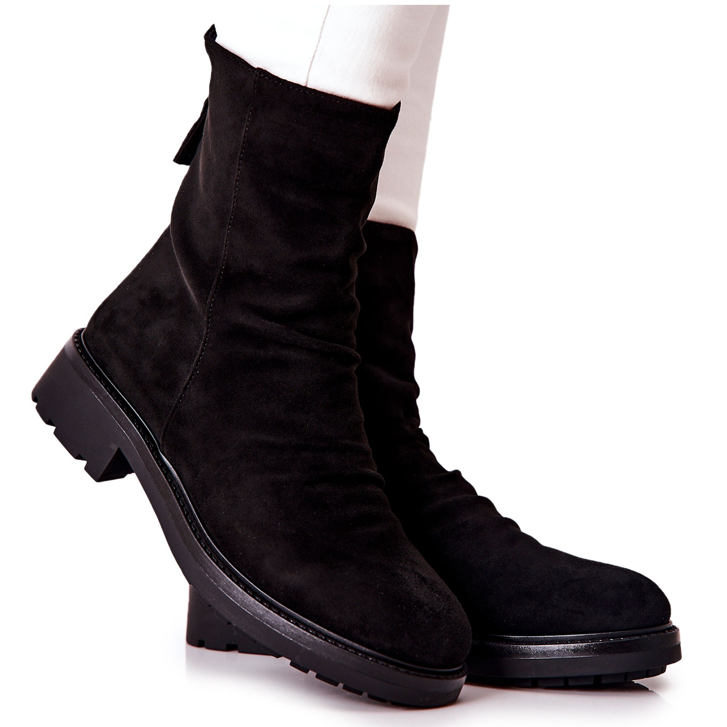 Detalles: Botas altas arrugadas de ante negro Trisha