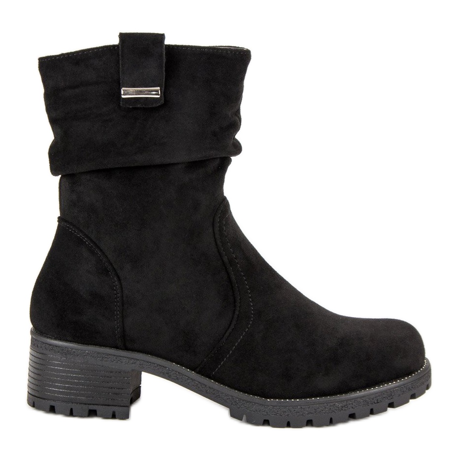 Estos zapatos se distinguen por un pequeño tacón de 5 cm de altura, que garantiza estabilidad y comodidad al usarlos. Se cierran con una cómoda cremallera lateral y son fáciles de poner. El talón incorporado y rígido sujeta perfectamente el pie y el ancho adecuado de la pala (30 cm) hace que las botas se ajusten bien a las piernas.