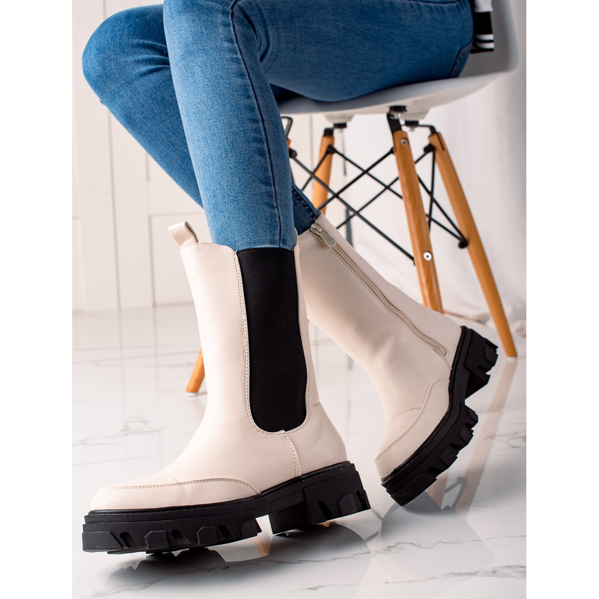 El color beige hace que las botas se adapten perfectamente a una variedad de estilos, desde el informal hasta el más elegante. Sin estampados, son una base excelente para combinaciones creativas de moda. Además de su valor estético, las botas están equipadas con una práctica cremallera, que hace que sean más fáciles de poner y quitar.