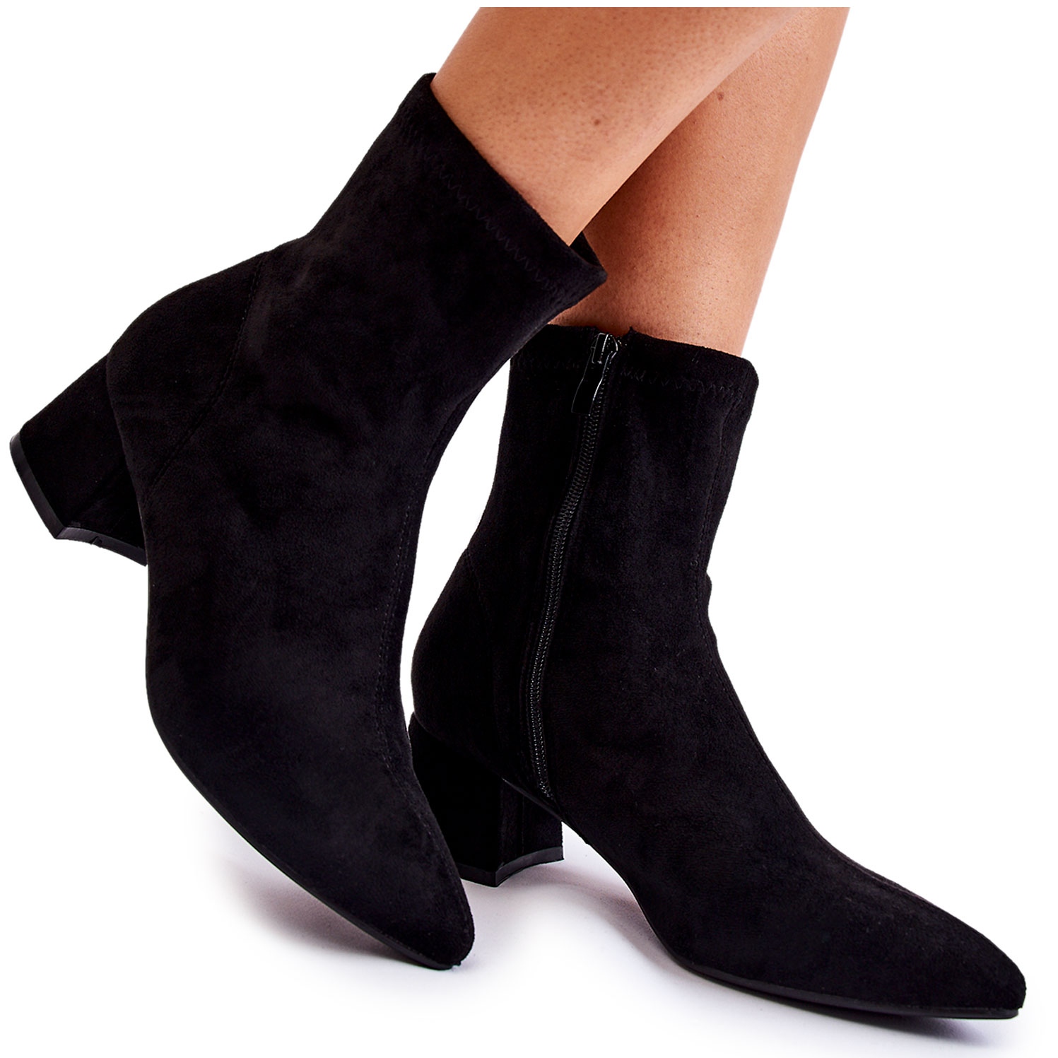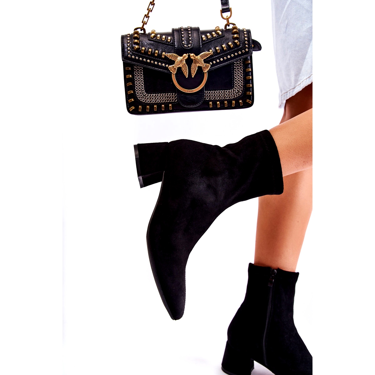 Te presentamos unas botas de ante de mujer elegantes y modernas WD1 Gloriss 8098-1 en color negro, que son una elección perfecta para la temporada de primavera y otoño. La parte superior alta, que llega por encima del tobillo, garantiza comodidad y sujeción estable para el pie, y el cierre rígido añade carácter.