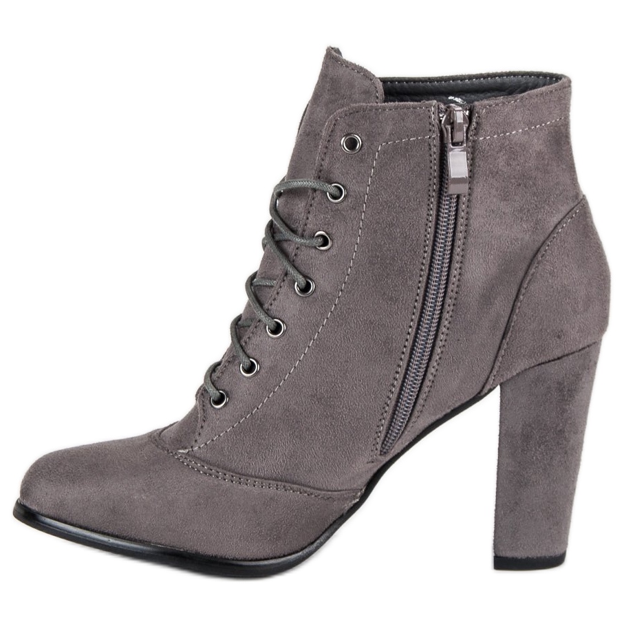 ¡Descubre la elegancia y la comodidad con los botines de tacón Juliet! Estos botines grises con cordones son la elección perfecta para las mujeres que quieren combinar un estilo clásico con un estilo moderno. Confeccionados con ante ecológico de la más alta calidad, brindan no solo una apariencia estética, sino también comodidad de uso.