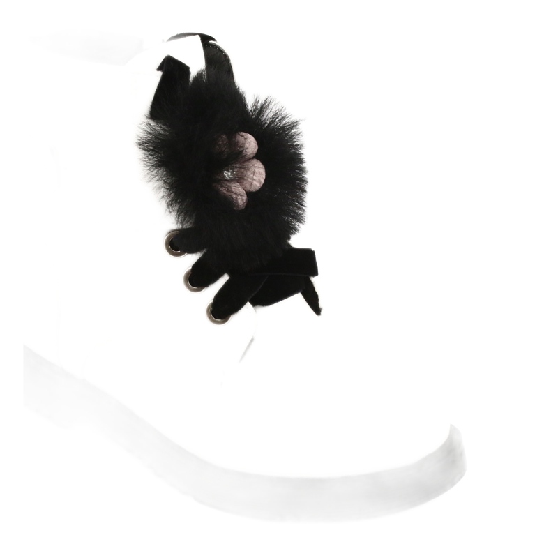 El pelaje negro añade un toque de lujo, y una elegante flor en polvo decorada con lentejuelas, sujeta al cinturón, le da al conjunto un carácter juvenil. Gracias al sistema de cordones y al cierre intuitivo de cremallera, incluso los amantes de la moda más jóvenes podrán calzar estos elegantes zapatos.