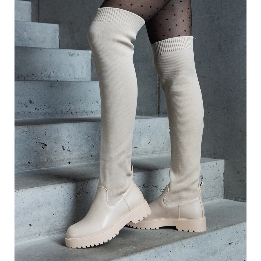 Presentamos botas beige ligeras con una parte superior elástica, que complementará perfectamente cualquier estilización de moda. Otra marca ofrecida por la marca, estos elegantes mosqueteros se distinguen por el diseño moderno y la practicidad. La altura que alcanza la rodilla (66 cm) los convierte en una opción ideal para los días más fríos, garantizando la comodidad y el calor sin calentamiento adicional.