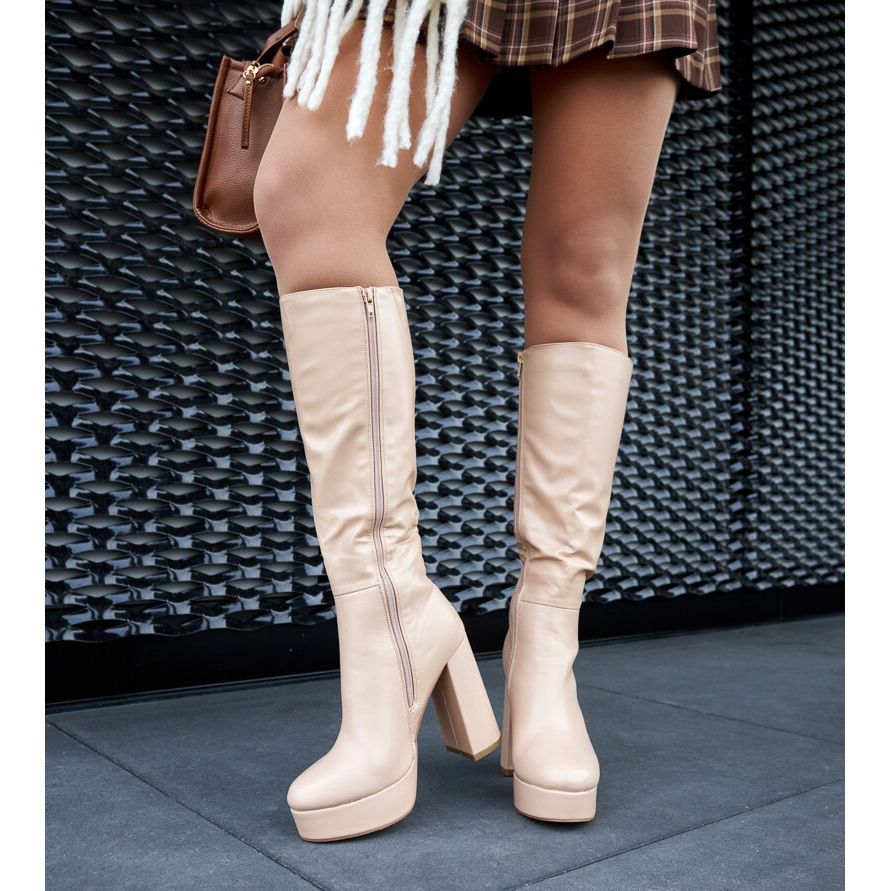 Detalles: Botas beige con plataforma y tacón de Zoccorino