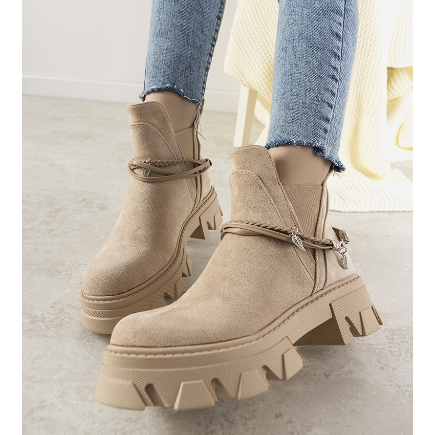 Descubre el encanto único de las botas beige con pulsera Fearless, que son el complemento perfecto para cualquier estilismo de otoño e invierno. Confeccionados en piel de ante ecológica, estos botines únicos combinan elegancia y comodidad y ofrecen una punta redonda con un efecto ligeramente desgastado para un estilo distintivo.