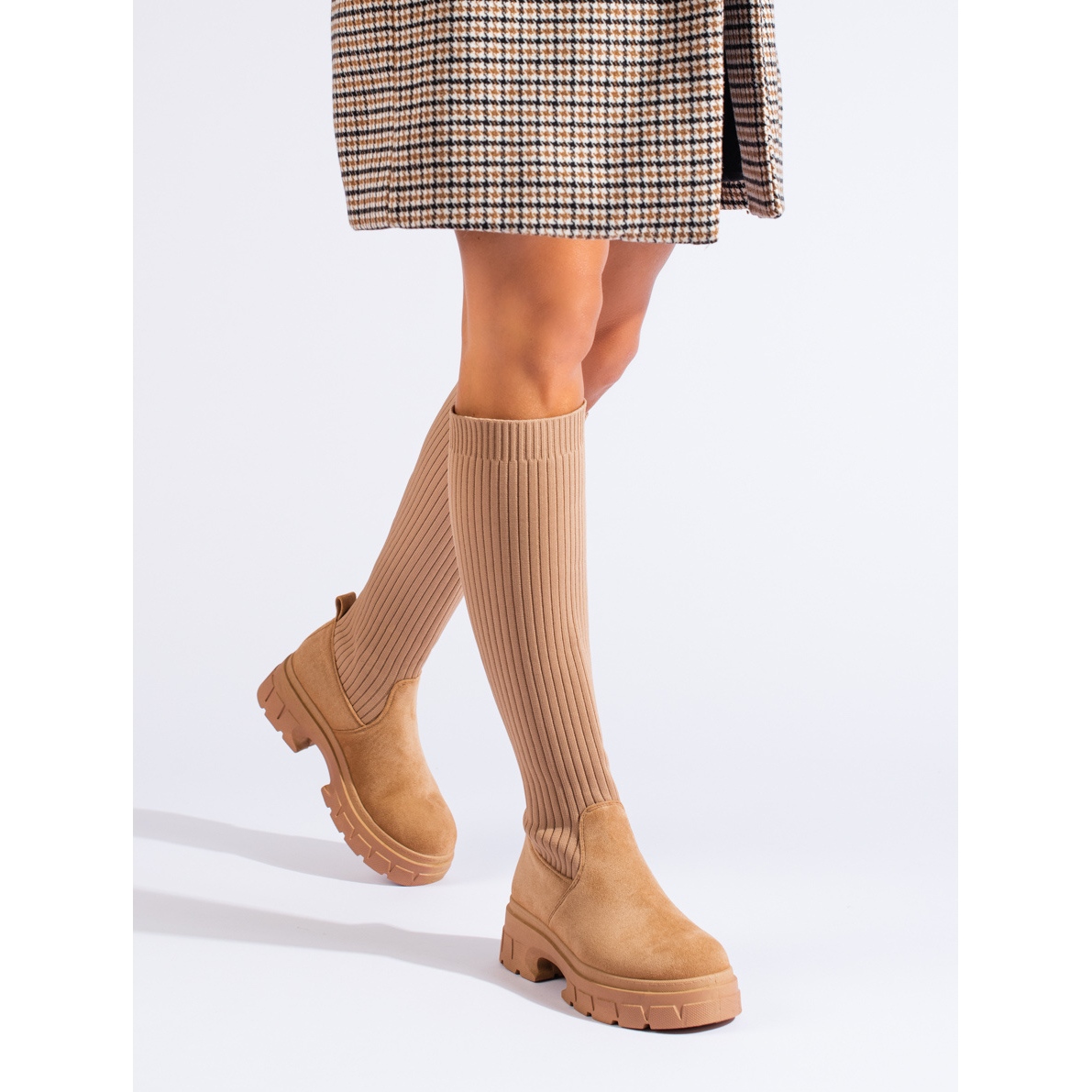 Modelo: botas para mujeres con una parte superior flexible - beige. Ideal para aquellos que buscan una combinación de clásicos, comodidad y calor todos los días.