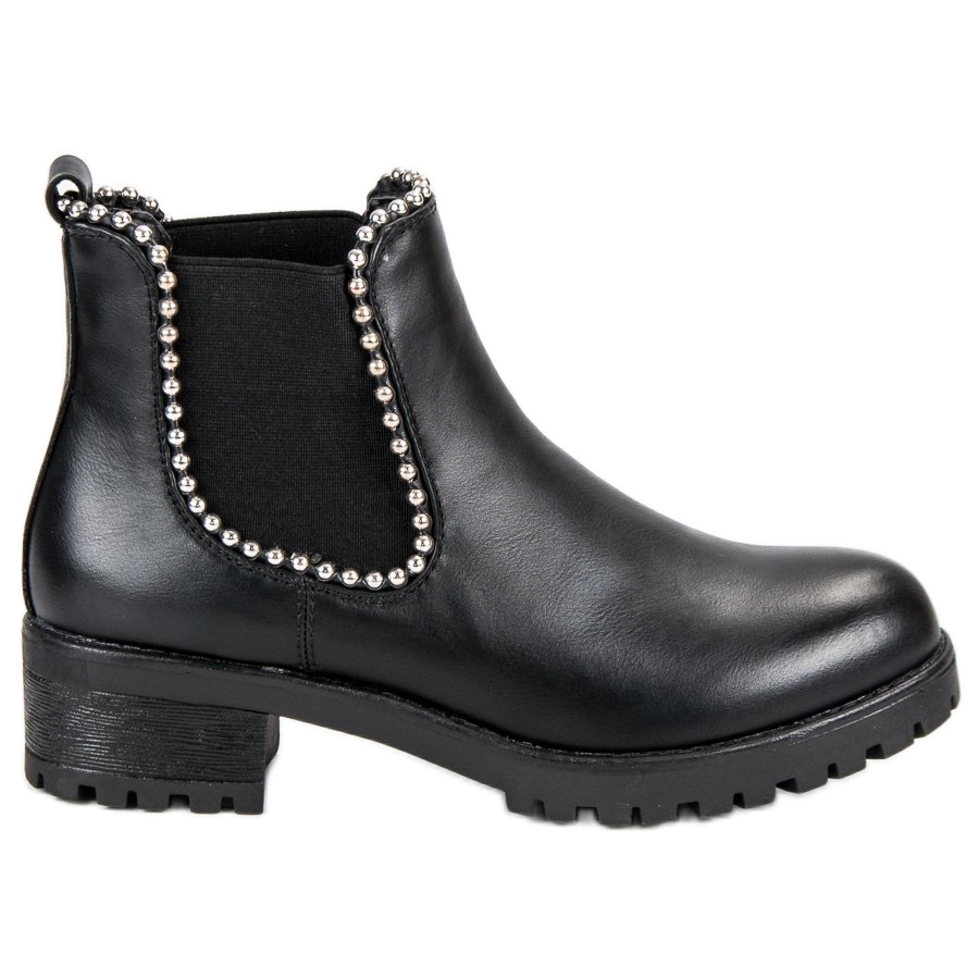 Las botas están hechas de cuero ecológico, lo que las hace no sólo elegantes sino también respetuosas con el medio ambiente. Además, decorados con pedrería que les aporta un carácter único, encajan perfectamente en las tendencias contemporáneas.