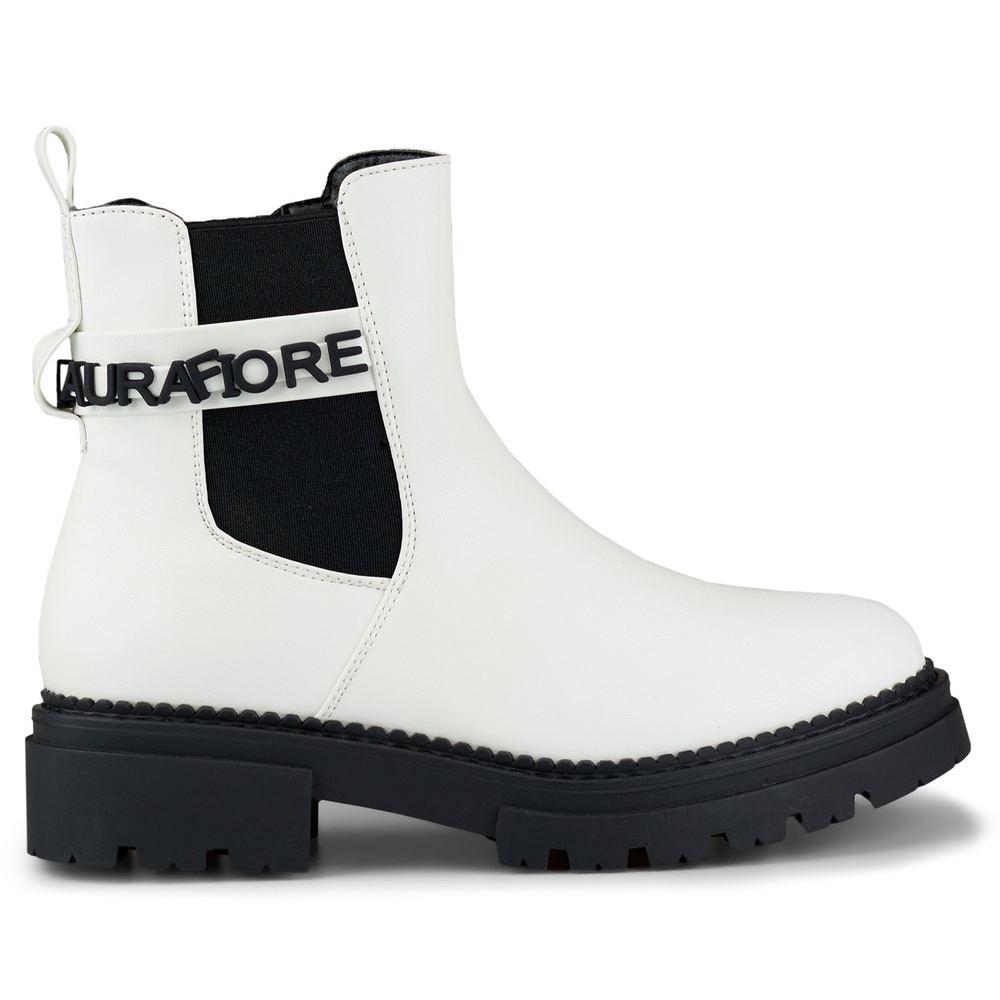 Detalles: Botas blancas de mujer fabricadas en ecopiel con inscripción decorativa. blanco