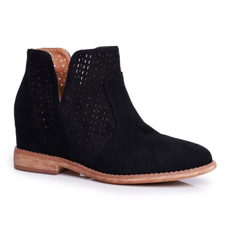 Los botines con cuña calada de S.Barski en color negro son una elección perfecta para las mujeres que quieren combinar estilo con comodidad. Estas botas únicas, fabricadas en ante ecológico de alta calidad, deleitan con su diseño moderno y su atención al detalle. El estampado calado en los laterales no sólo las hace ligeras, sino que también ventilan perfectamente el pie, lo que las convierte en una opción ideal para los días de primavera y verano.