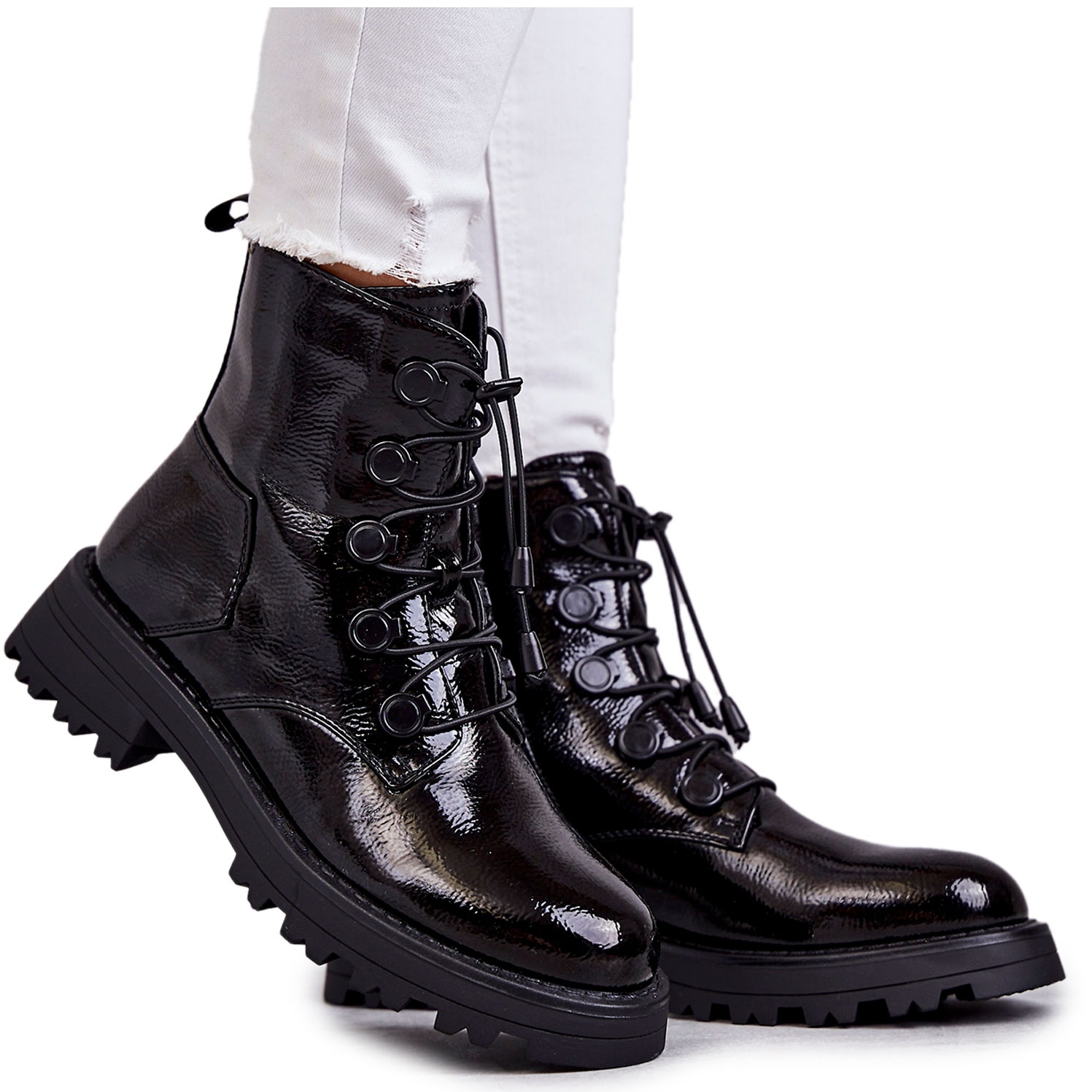 Detalles: PJ1 Botas Cálidas De Mujer Lacadas Con Canalé Helia Negro
