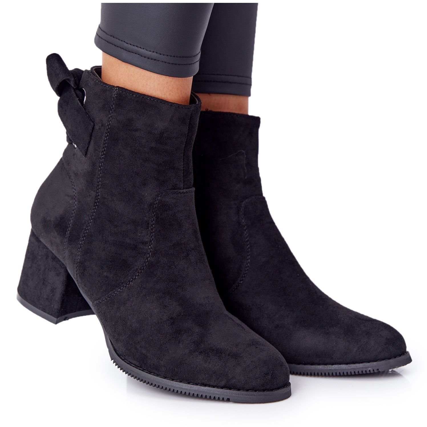El color negro de las botas encaja perfectamente con las últimas tendencias, y la punta redonda y el lazo decorativo les dan un carácter único. El tacón en bloque de 6,5 cm de altura garantiza estabilidad y comodidad de uso, perfecto para largos paseos o salidas por la ciudad. Con cremallera, este modelo es sumamente práctico, y el ancho superior de 25 cm y el ancho G hacen que se ajusten perfectamente al pie.