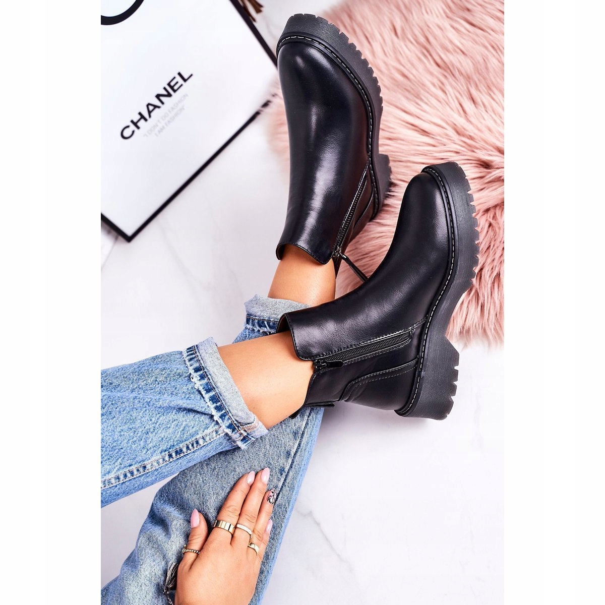 El modelo Moon Walk se distingue por una puntera redonda y una práctica cremallera que facilita ponerse y quitarse los zapatos. La parte superior alta, que llega hasta el tobillo, combinada con una plataforma de 4,5 cm de altura, proporciona no sólo un aspecto moderno, sino también comodidad adicional durante el uso.