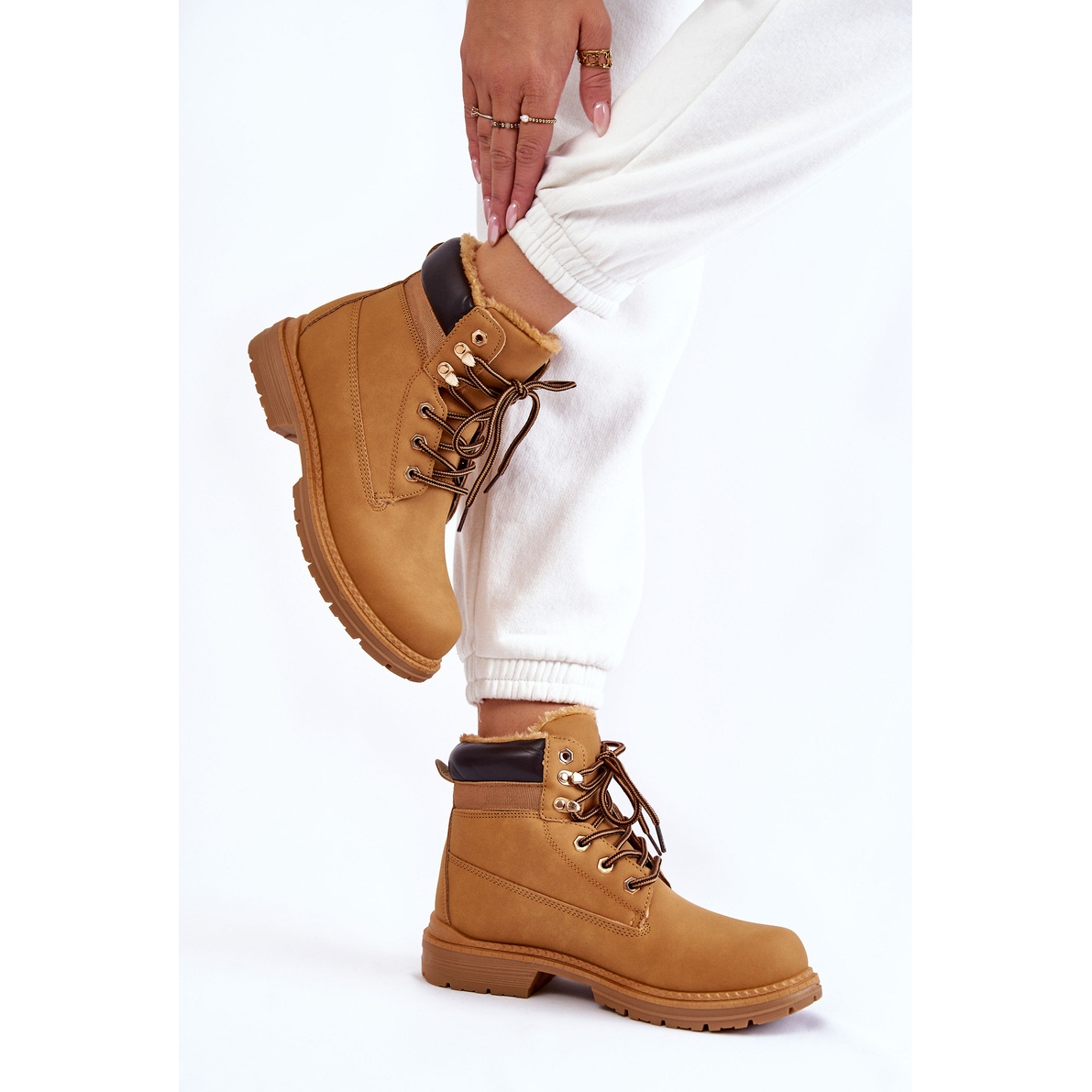 Camel Classic, botas universales hechas de cuero ecológico. El modelo incrustado en un talón plano con una plataforma delicada y una suela nutrida proporciona un cierto paso, y el pelaje espeso en el interior proporciona comodidad y calor incluso a bajas temperaturas. El talón está rígido y el cordón cómodo le permite caber perfectamente. Los insertos de espuma son intercambiables y cubiertos con agua ecológica.
