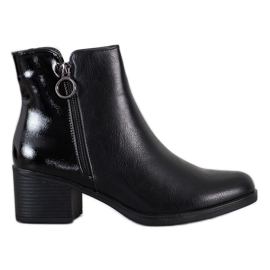 El material de la suela es material sintético con banda de rodadura, lo que asegura un adecuado agarre en diversas superficies. El clásico color negro hace que estas botas combinen con muchos conjuntos diferentes. Un detalle adicional es una cremallera decorativa que les da un carácter moderno.