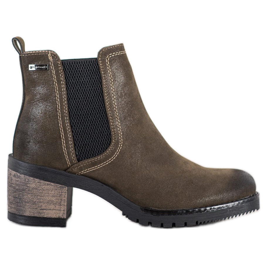 Los elegantes botines Chelsea Sergio Leone en color verde son una combinación perfecta de elegancia y comodidad, que encaja perfectamente en las tendencias de moda de la temporada otoño/invierno. Estos botines de mujer, fabricados en piel ecológica de alta calidad, se distinguen por una punta redonda y un moderno tacón en forma de bloque de 6,5 cm de altura, que garantiza no sólo una apariencia atractiva, sino también estabilidad al usarlos.