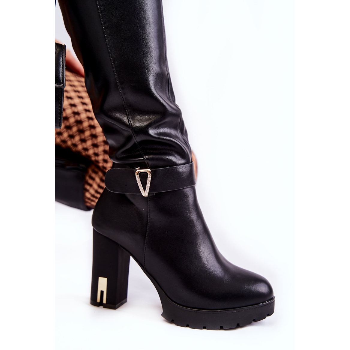 Las botas clásicas de cuero con tacón alto PG1 en negro son la elección perfecta para la próxima temporada de otoño. Confeccionados en cuero ecológico de alta calidad, combinan elegancia con comodidad de uso. Su diseño moderno, su tacón decorativo y su plataforma los convierten en un complemento perfecto para muchos estilos.