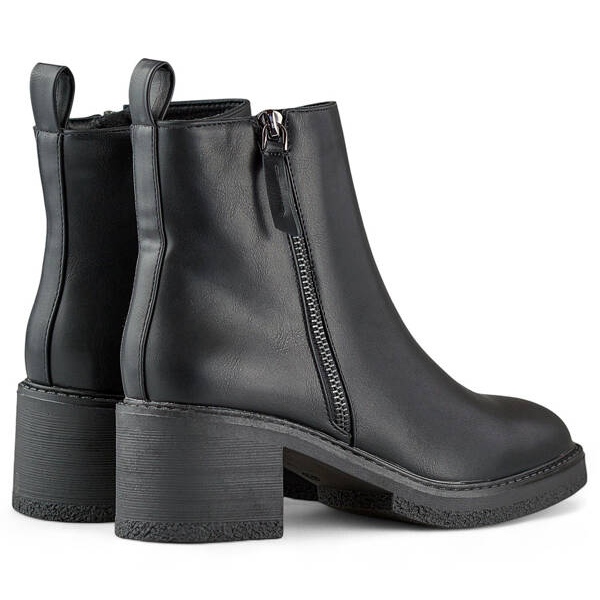 La altura del tobillo y el aislamiento garantizan un confort térmico, muy valioso en los días más fríos. El cierre de cremallera hace que sea fácil de poner y quitar, y la altura del tacón de 6 cm hace que las botas sean cómodas de usar durante todo el día. El interior de los zapatos está forrado con tela, lo que aumenta aún más la comodidad de uso.