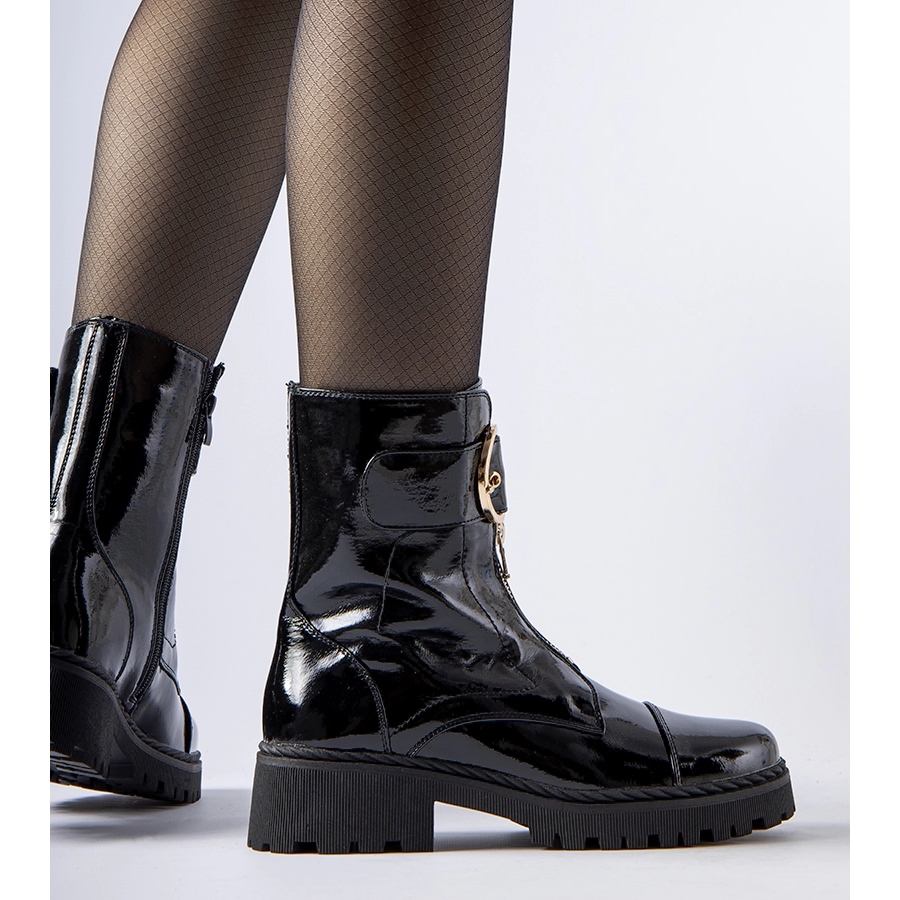 Las botas tienen una solución práctica en forma de cremallera, que hace que sean más fáciles de poner y quitar. Su carácter femenino se acentúa con una puntera redonda, que es a la vez elegante y funcional. El diseño hasta el tobillo proporciona protección adicional contra el frío. Lacados, presumen de un llamativo brillo que atrae las miradas y les confiere un carácter único. Las botas tienen tacón plano, lo que garantiza comodidad al caminar. El aislamiento del interior garantiza el confort térmico incluso en los días más fríos. Estas botas Classe con aislamiento lacado en negro son una elección perfecta para la temporada de invierno, ya que combinan no solo un aspecto elegante, sino también funcionalidad y protección contra las bajas temperaturas. Serán el complemento perfecto para cualquier estilismo invernal, aportándole elegancia y un carácter único.
