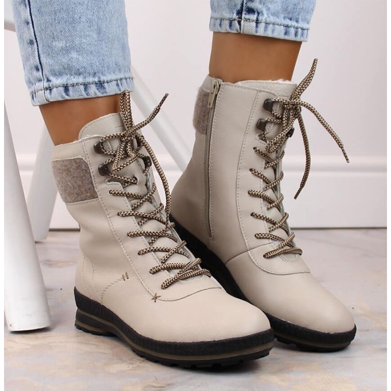Botas cómodas de piel con aislamiento Rieker W RKR614, beige