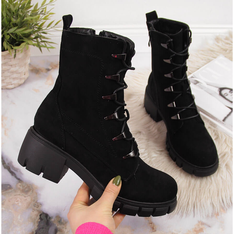Los colores de las botas son el clásico negro, que no sólo es universal, sino que también es fácil de combinar con muchos estilos. El estilo de estos zapatos es una combinación informal de zapato de trabajador y trampero elegante, lo que los hace combinar con muchos conjuntos de otoño e invierno.