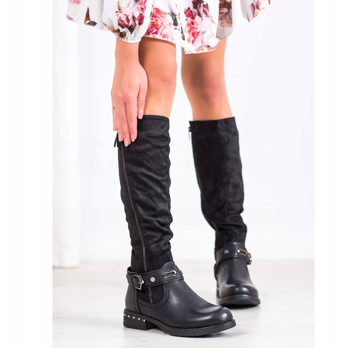 Detalles: SHELOVET Botas con cinturón decorativo negro