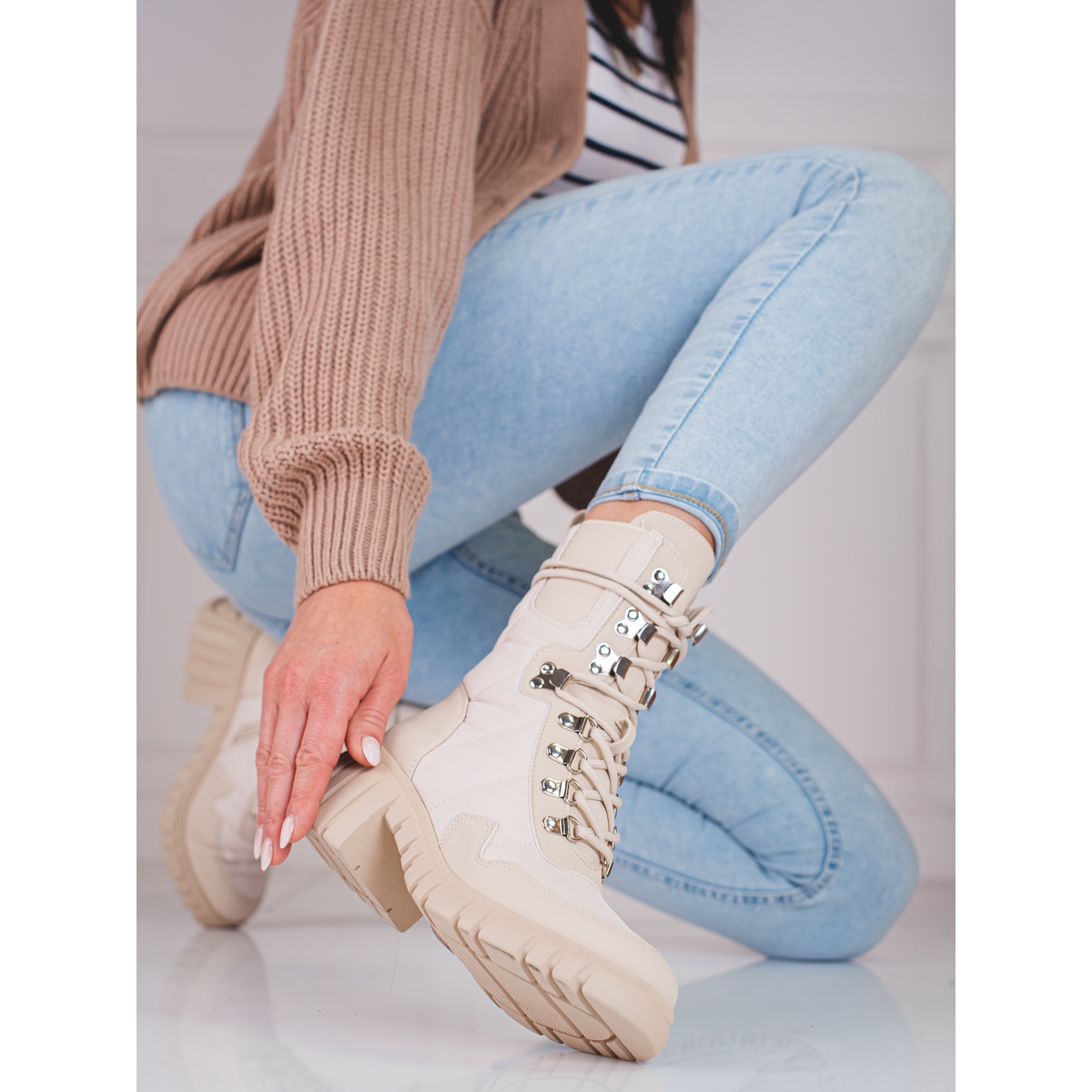 SHELOVET Botas con cordones para mujer en la plataforma Shelovet. beige