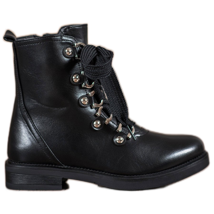 ¡Descubre el estilo único y la comodidad que ofrecen las botas SHELOVET negras! Estos elegantes calzados fabricados en piel ecológica son una elección perfecta para la temporada otoño/invierno. Su parte superior hasta los tobillos, junto con el cierre de encaje decorativo, le dan a los zapatos un toque rockero característico. Gracias a un cómodo tacón ancho de 3,5 cm, las botas proporcionan estabilidad y comodidad durante el uso diario.
