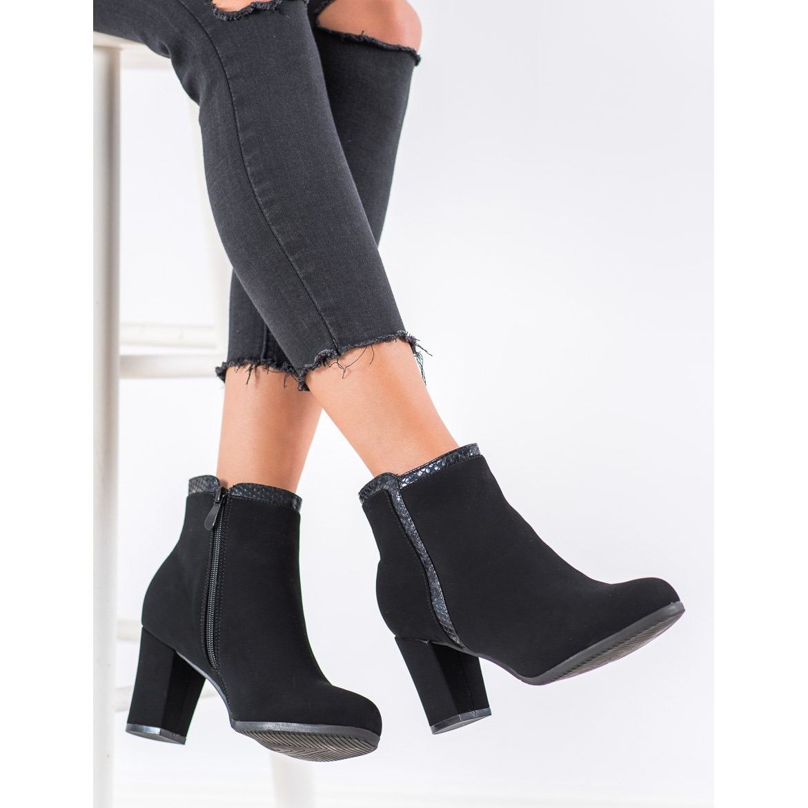 Los elegantes botines Weide en negro son una opción elegante para las mujeres que valoran la moda y la comodidad. Confeccionados en piel ecológica de ante negro de alta calidad, combinan un aspecto moderno con elementos clásicos. Gracias al tacón en bloque de 7,5 cm de altura, aportan estabilidad y comodidad durante el uso diario y, al mismo tiempo, añaden elegancia a cualquier estilismo.