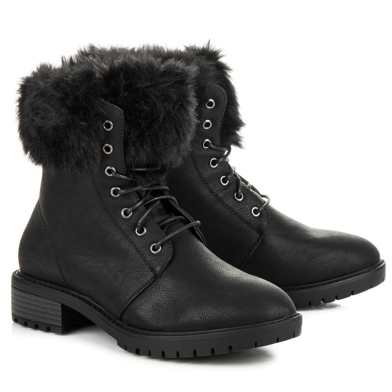 **Botines Queentina con pelo en la parte superior – Negro**