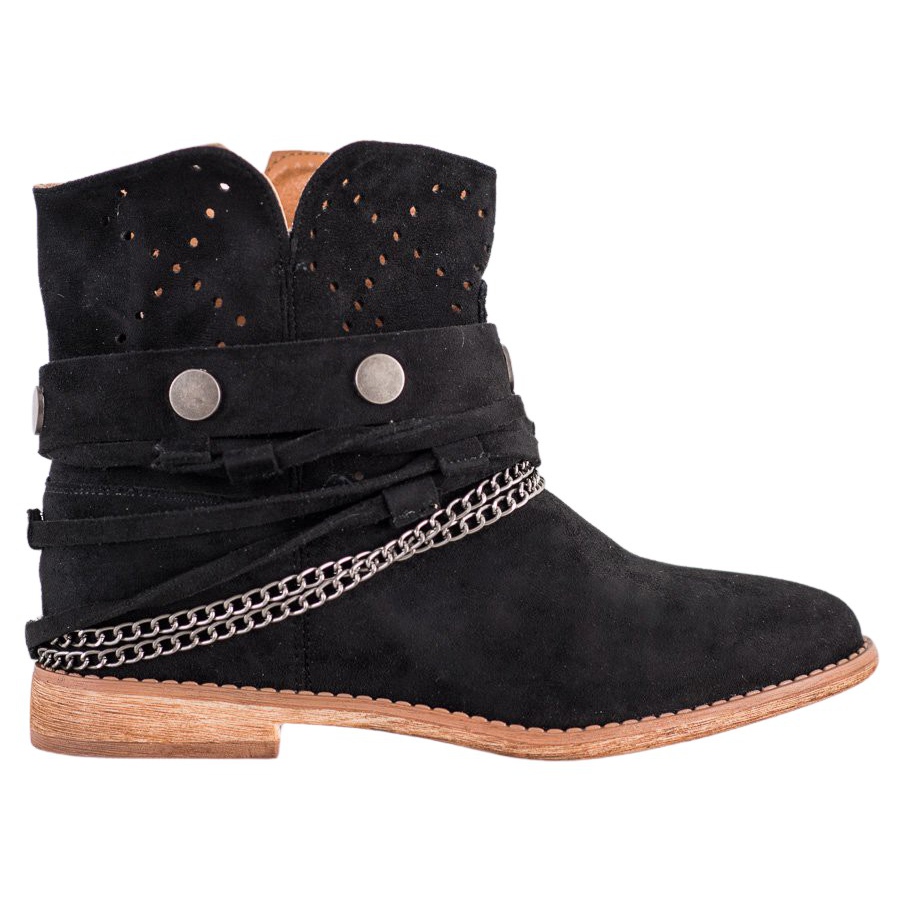 Descubre la elegancia y la comodidad en cada situación con los botines Bella Paris con tiras decorativas en un clásico color negro. Estas botas de mujer únicas están hechas de un material de alta calidad que imita el cuero de gamuza, lo que las hace lucir elegantes y al mismo tiempo prácticas.