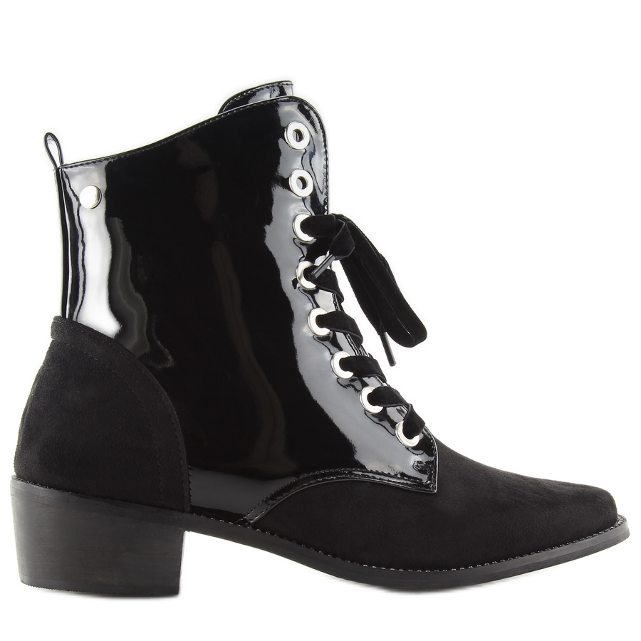 Además, la falta de patrón hace que las botas sean fáciles de combinar con tu ropa favorita. ¡No pierdas la oportunidad de añadir estos zapatos únicos a tu colección! Elija botines con cordones de charol negro que enfatizarán su estilo único.