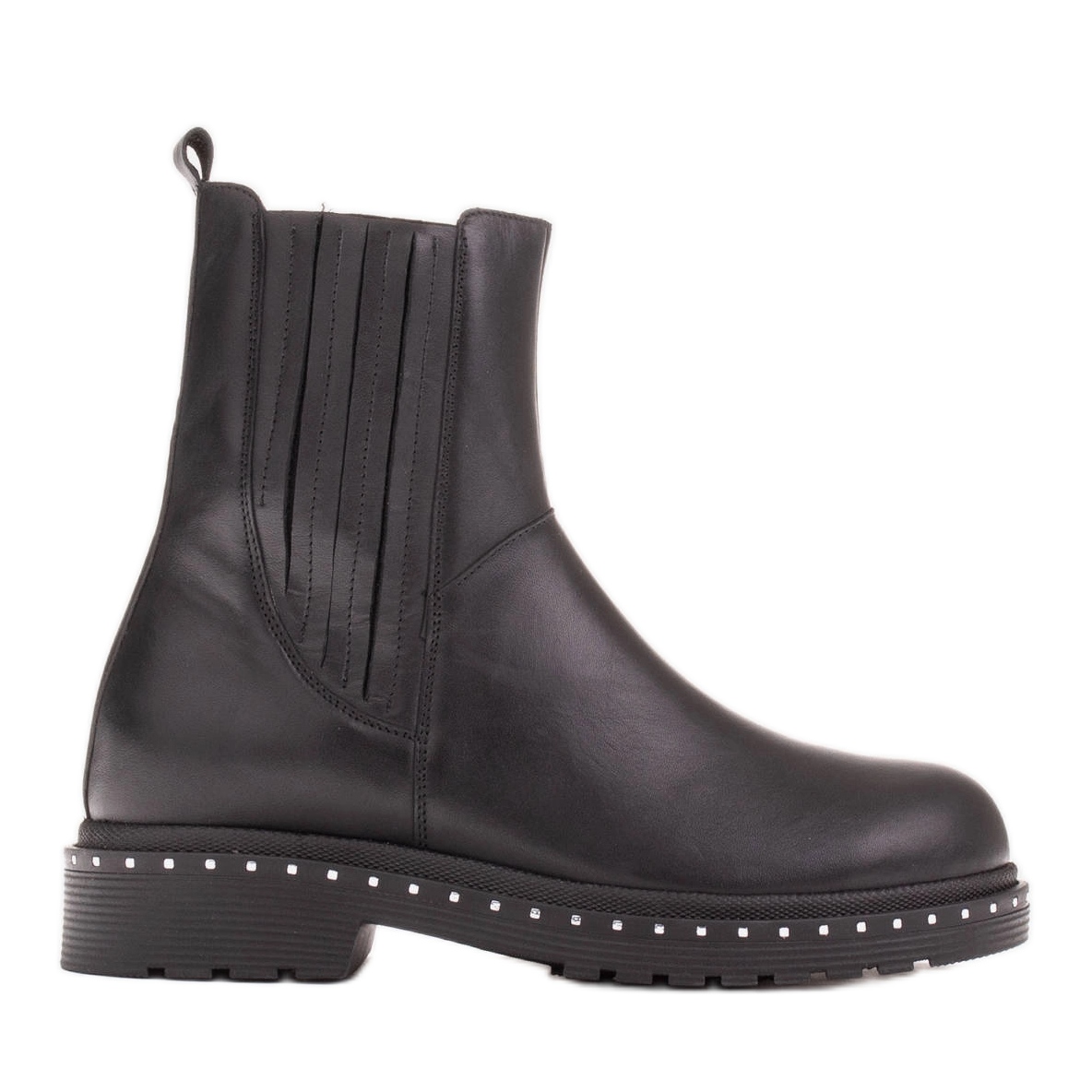Las botas de costanza elegantes y prácticas son una propuesta para mujeres que valoran un corte clásico con un poco de personaje de rock. Hecho de cuero de grano, decorado con tachuelas plateadas y diamantes de imitación, combinan durabilidad con un aspecto de moda. El interior de fieltro aislado proporciona comodidad térmica en los días más fríos, y la cremallera cómoda del costado hace que sea más fácil ponerse.