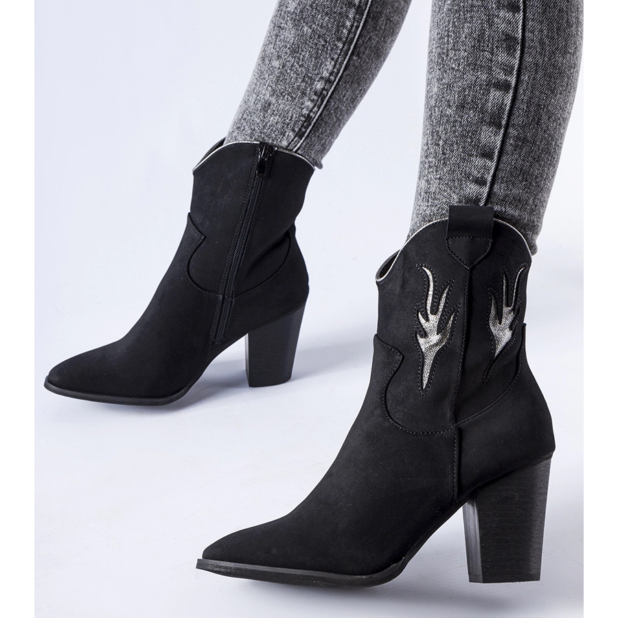Detalles: Botas cowboy negras con complementos Bacoli plateados. negro