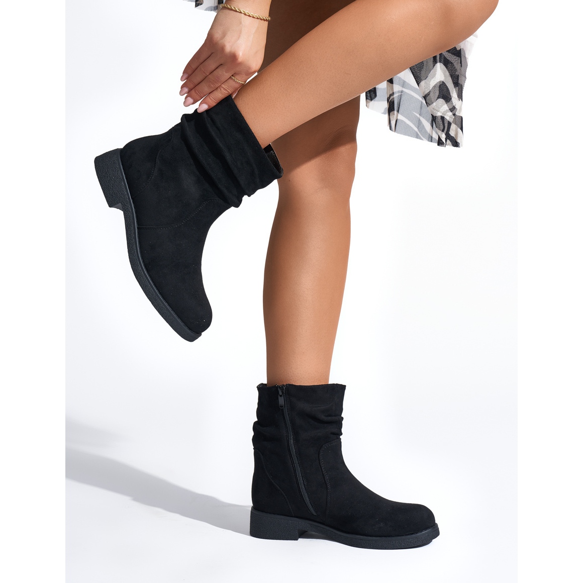 Gracias a la cremallera, ponerse y quitarse los zapatos es rápido y cómodo. El modelo tiene punta redonda y el ancho adecuado de la pala (28 cm), lo que garantiza comodidad y buen ajuste. Las botas llegan hasta el tobillo (15 cm), lo que les da carácter y las hacen lucir geniales con jeans, faldas o vestidos.