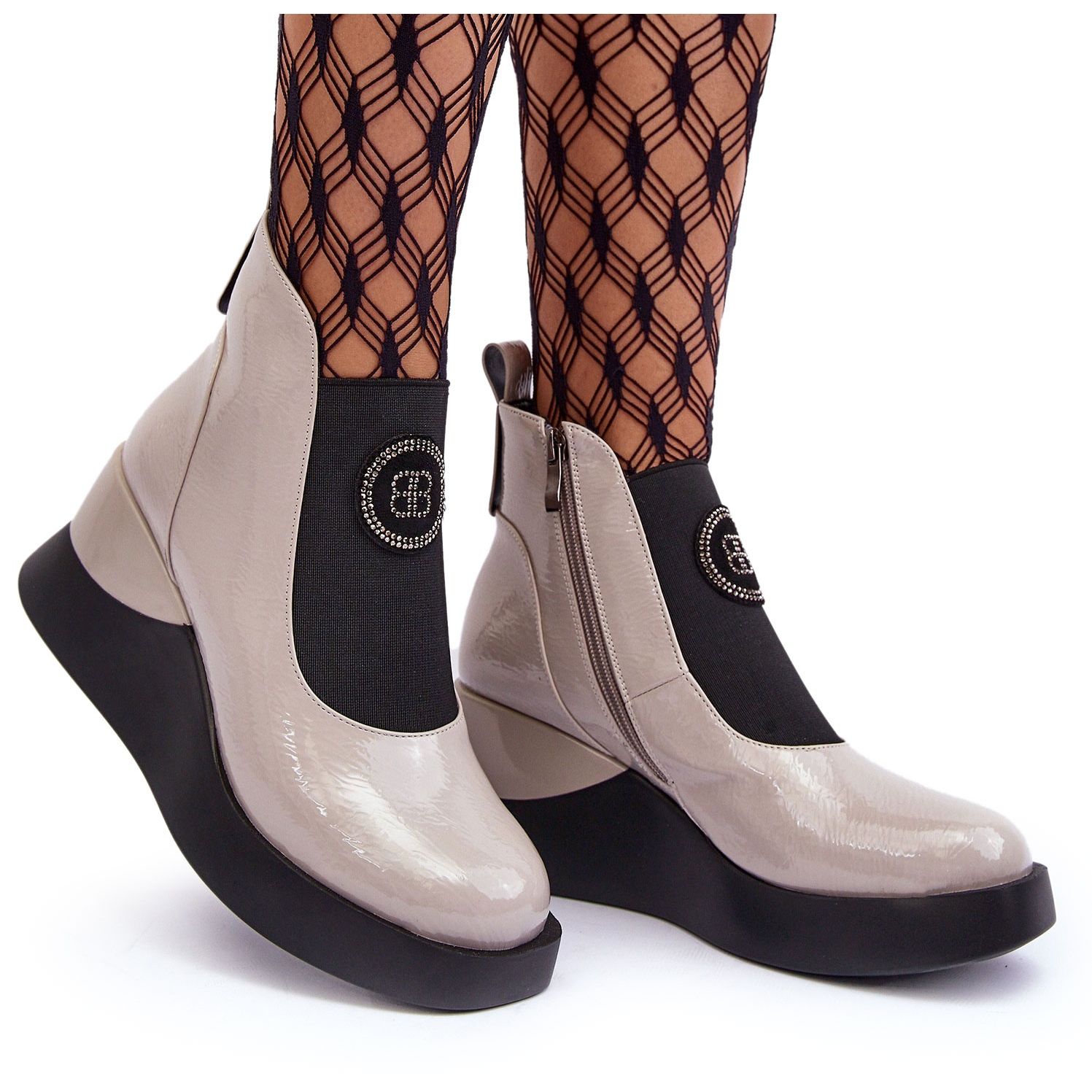 Boots S. Barski de mujeres elegantes y cómodas, perfectas para la temporada de otoño y invierno. El modelo se coloca en una cuña estable con una altura de 7 cm con una plataforma sutil, gracias a los cuales agrega centímetros, sin renunciar a la comodidad de caminar. Hecho de cuero ecológico barnizado en un tono de L. gris con acentos negros, un aspecto moderno y universal que coincide con muchos estilos.