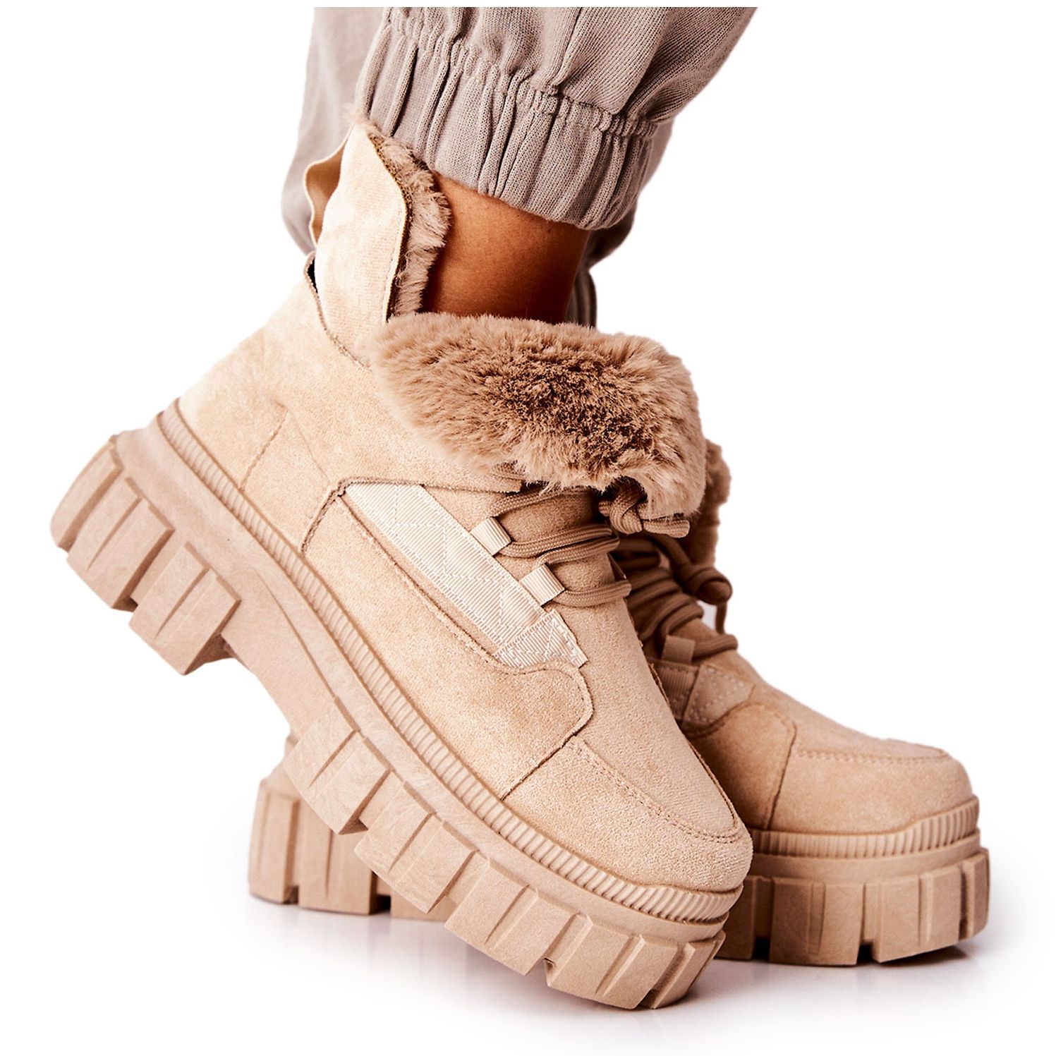 Descubre la elegancia y la comodidad en los días de invierno con las botas de montaña PM1 Demaris beige. Estos zapatos únicos están cuidadosamente hechos de gamuza ecológica, lo que no solo los hace lucir hermosos, sino que también es respetuoso con el medio ambiente. El interior de las botas está relleno de pelo cálido y agradable, que asegura comodidad y protección contra el frío.