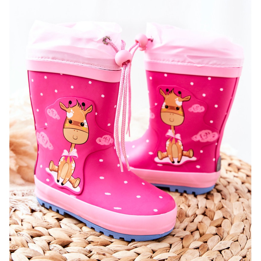 Botas de agua de goma para niños Fuchsia Glynnal Giraffe rosa
