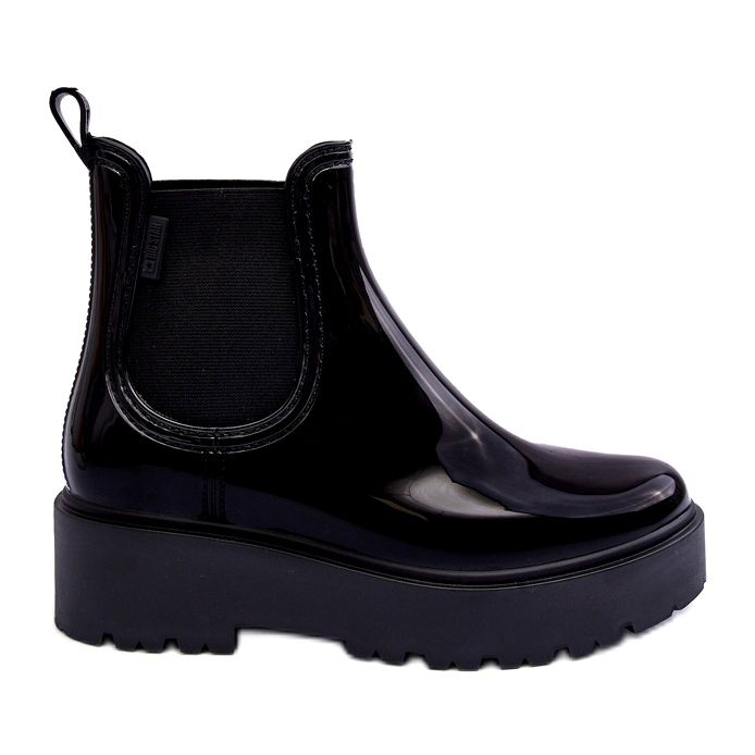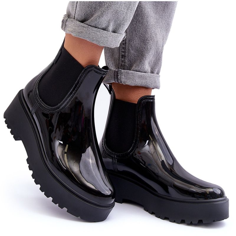Big Star Botas de agua lacadas para mujeres en la plataforma negra Big Star MM274395 negro