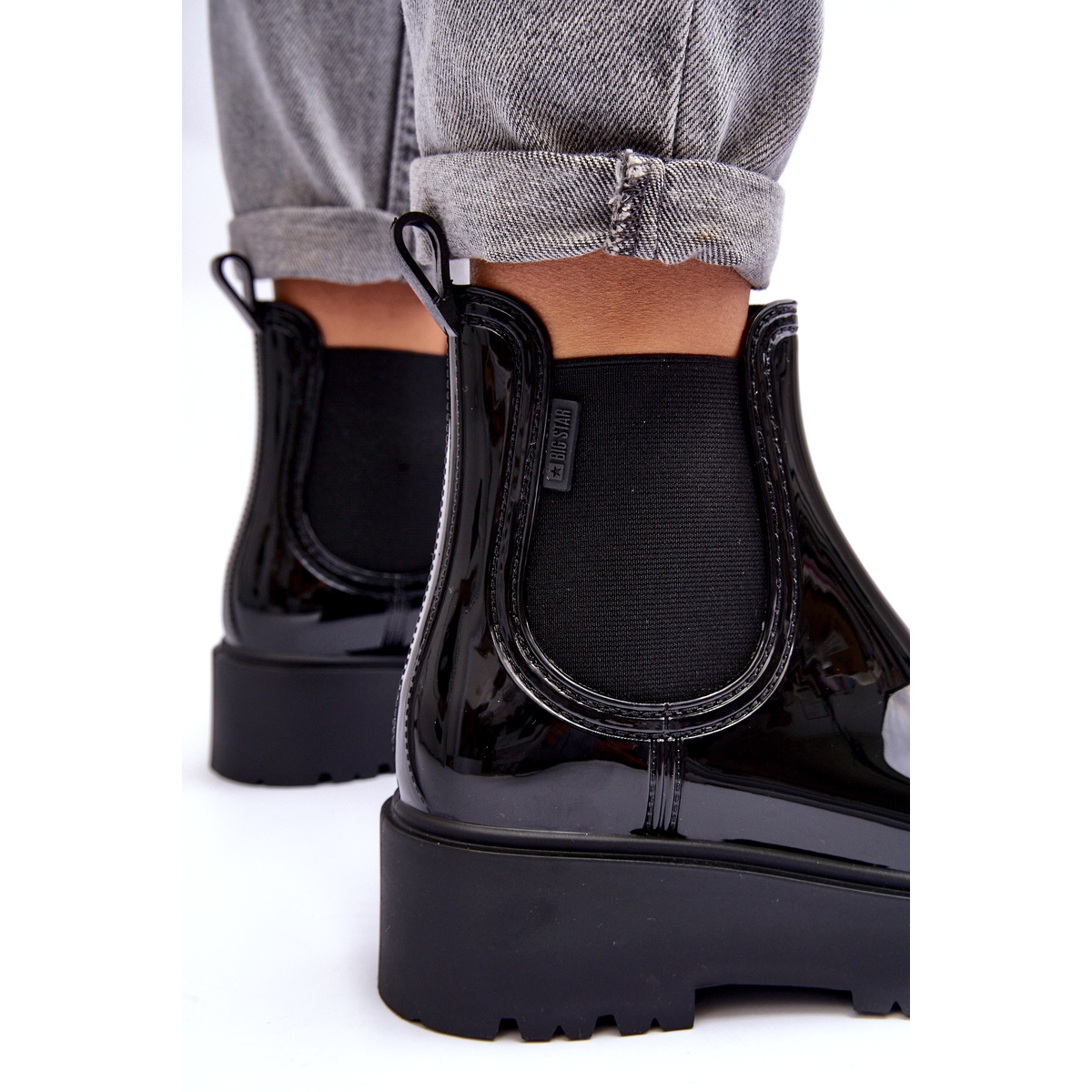 Detalles: Botas de agua lacadas para mujeres en la plataforma negra Big Star MM274395 negro