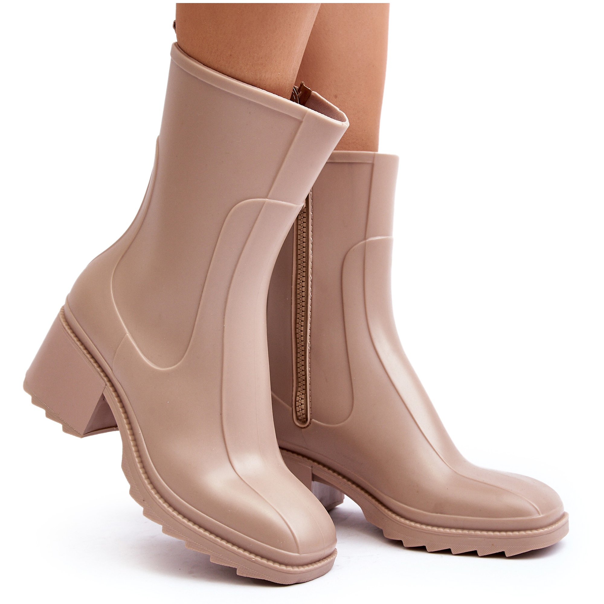 Detalles: Botas de agua mate con tacón alto para mujer, Beige Bertaida