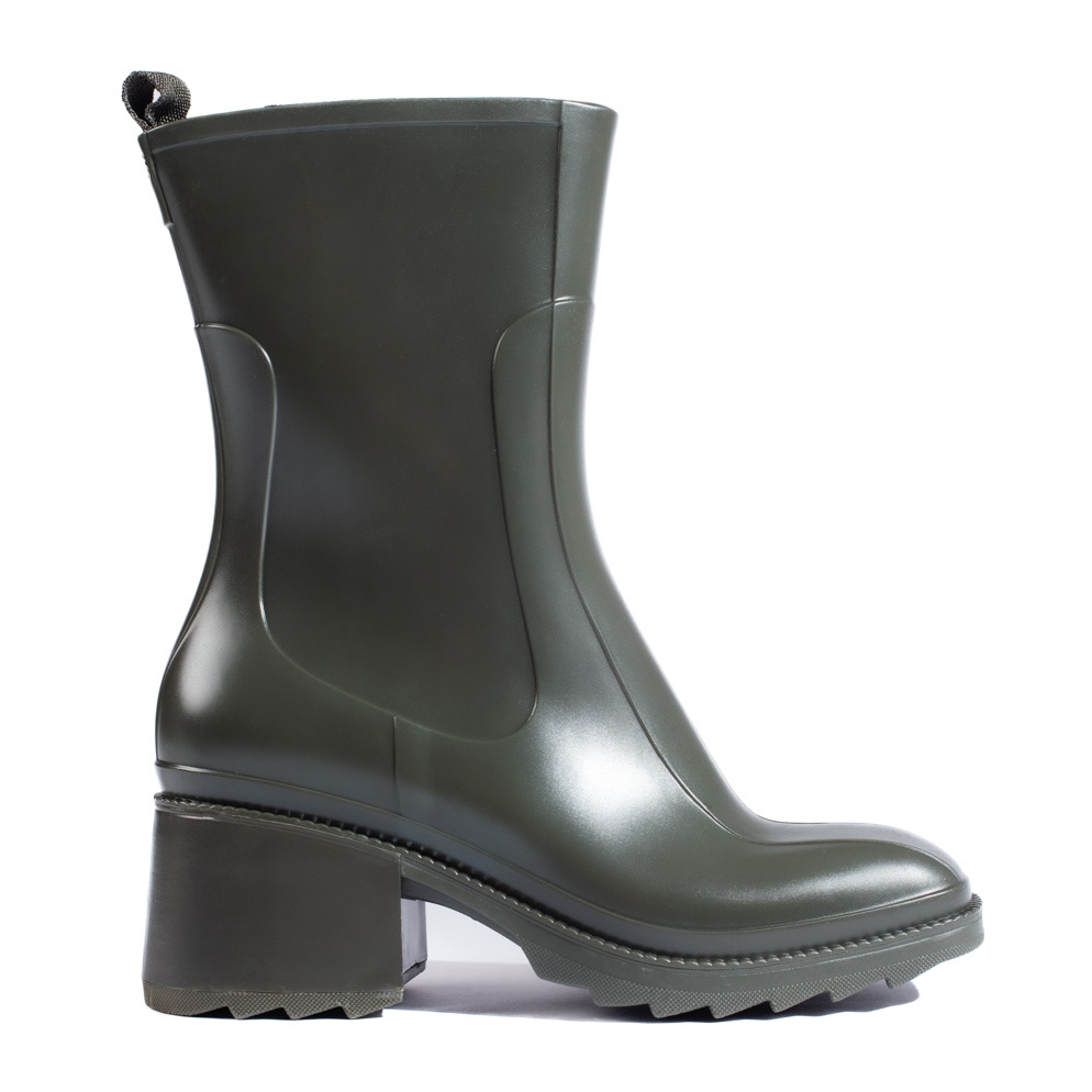 Detalles: SHELOVET Botas de agua verdes de tacón con cremallera